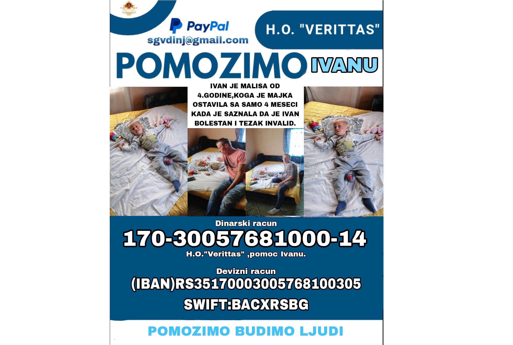 Ivan je decak od 4 godina i dete je sa posebnim potrebama,potrebna mu je 24/7 kompletna nega i briga,Majka ga je ostavila i odrekla se njega kada je imao samo…