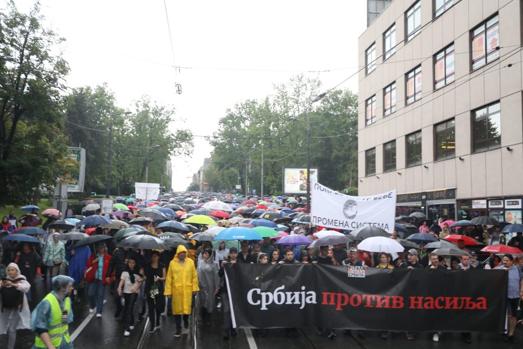 U Beogradu je juče održana 4.protestna šetnja protiv nasilja. Ni jaka kiša nije sprečila veliki broj ljudi da se okupi i izrazi svoje nezadovoljstvo stanjem u državi i društvu. Primetno je bilo, da iz nedelje u nedelju, broj šetača sve više raste. Kako kažu neće odustati, dok njihovi zahtevi ne budu ispunjeni, a to su: