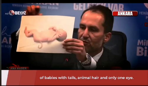 pokazujući slike novorođenih beba sa raznim telesnim devijacijama kao što je rep na novorođenčetu, jedno oko, dlaka kao u životinje , više udova i sl. tvrdeći da je to rezultat vakcinisanih roditelja novom mRNA vakcinom protiv Covida-19. Tvrdi da ovo nije vakcina već eksperiment koji menja gene. U emisiju se uključio i klinički lekar Mihtap Ektepa i neurohirurg Bilgi Hamdide i specijalista kardiolog prof.dr.Serhata. Svi nabrojani su u Turskoj veoma cenjeni kao stručnjaci u svojim oblastima.